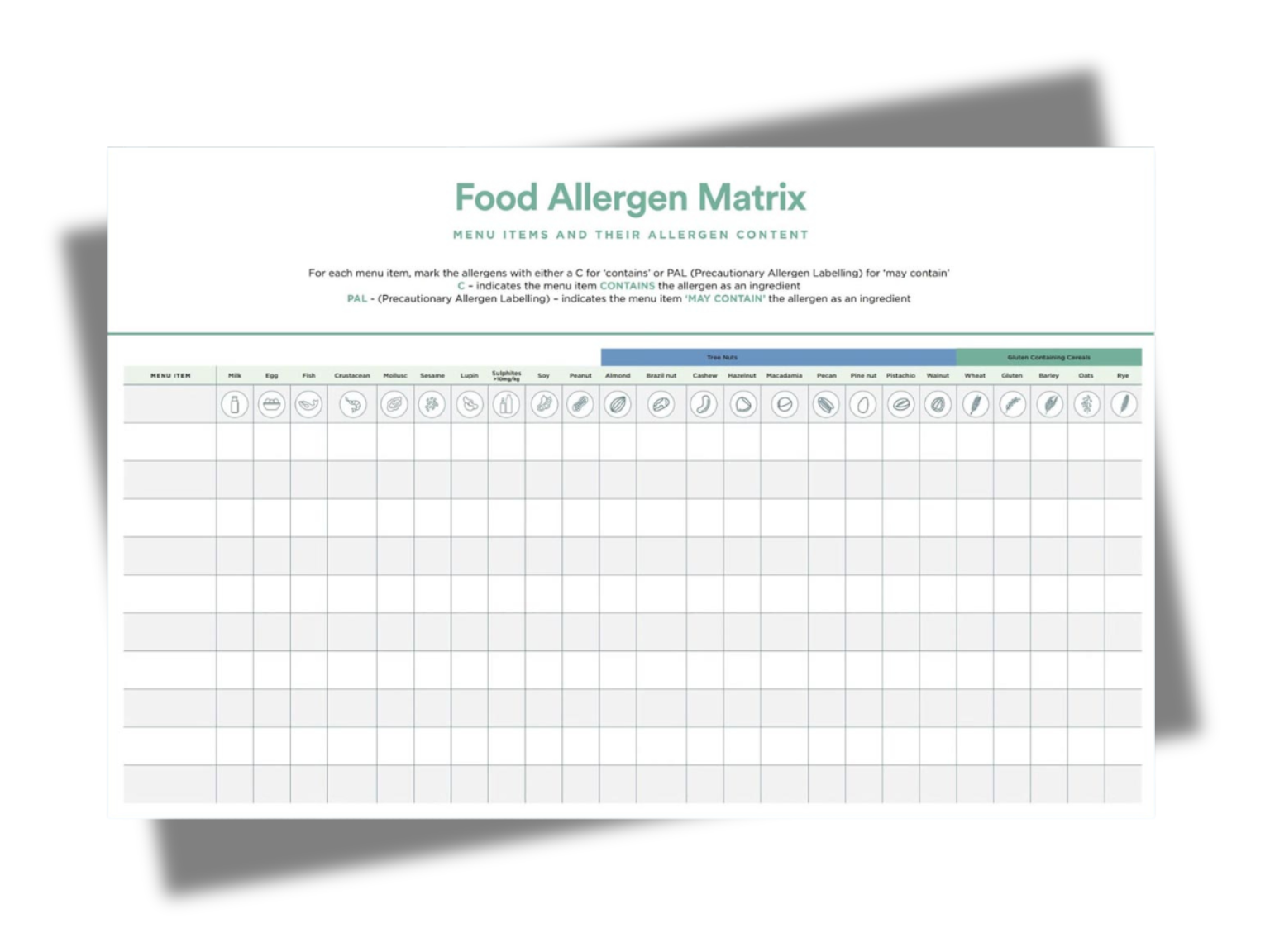 In Australia and New Zealand, food businesses are required to be able to provide information about the presence of allergens in the food they sell. An up-to-date food allergen matrix can help staff in achieving this.